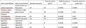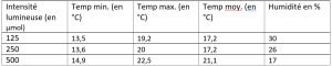 Les résultats se sont montrés peu concluants avec la Festuca trachyphylla (fétuque ovine). En revanche, pour la Festuca rubra commutata (fétuque rouge gazonnante), plus l’intensité lumineuse était forte (500), plus la qualité du gazon était importante.