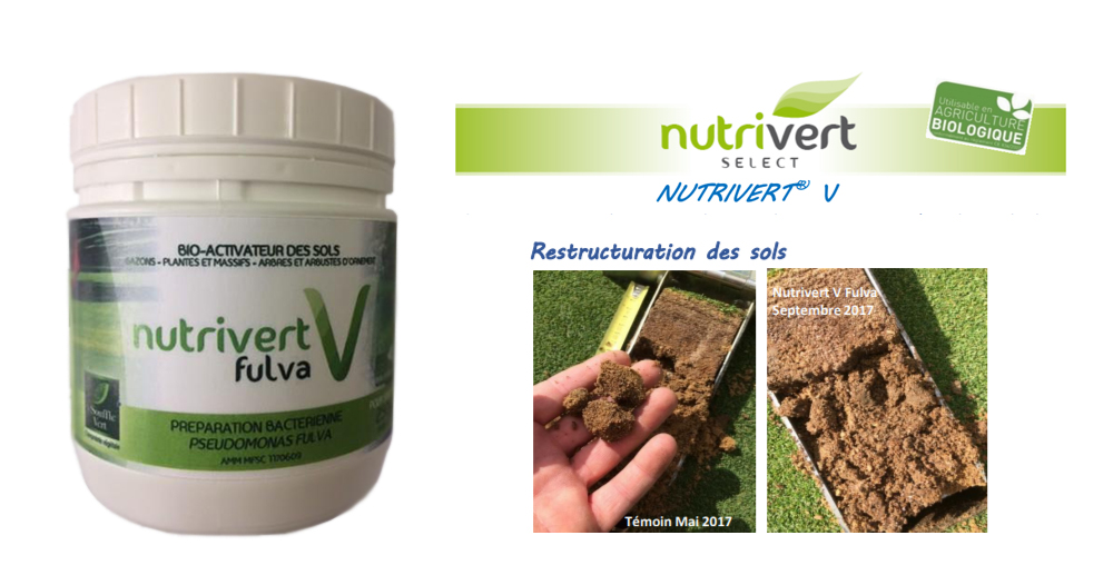 Soufflet Vigne commercialise depuis cette année un bio-stimulant à base de culture bactérienne de Pseudomonas Fulva (teneur garantie de 1,10⁸ ufc/g), censé pallier les carences chroniques des surfaces engazonnées en flore microbienne.