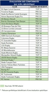 Voici le classement de la saison 2018/2019 de TOP 14 et de PRO D2 :