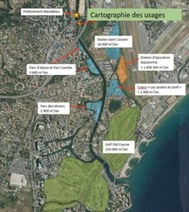 La directrice générale adjointe cycle de l’eau à l’Agglomération Cannes Lérins précise dans les colonnes de France 3 comment la station sera raccordée à l’arrosage du golf : « Au niveau de la station, il y a une petite bâche tampon qui permet de stocker l’eau avec des pompes qui permettent de la refouler vers une canalisation qui va être raccordée sur le réseau d’alimentation du golf. » Au total, la station d’épuration traite 18 millions de m3 d’eau à l’année. Une partie sera donc utilisée pour le golf.