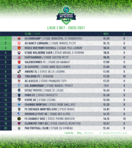 En revanche, un petit changement est à noter au niveau des trois dernières places de ce championnat.A savoir, Chambly (14.13) se retrouve en 18ème position à la place de Grenoble (14.70), 17ème. LeClermont Foot (13.51) et du Pau Football club (13.44) restent 19ème et 20ème mais avec une note qui augmente de match en match.