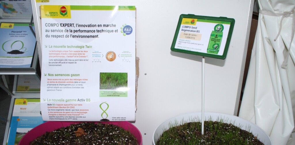 La première, Floranid Twin, est un nouvel engrais associant deux formes d’azote à libération lente (Isodur et Crotodur) dans un même granulé. Deux formes d’azote qui présentent un taux d’activité supérieur à 98%. D’après Compo, cette nouvelle génération d’engrais, conçue dans une démarche environnementale,ferait des terrains de sport « de véritables puits de carbone », en multipliant par deux la quantité de CO2 absorbée. L’argumentaire fait également valoir une meilleure maîtrise de la croissance du gazon, une réduction des pertes par lessivage, une bonne densité ainsi qu’une bonne couleur du gazon. L’autre innovation, homologuée pour la France cette année en tant qu’additif agronomique, est la souche Bacillus E4CDX2. Issue du travail de sélection de Compo Expert, cette bactérie est associée au Floranid Twin dans une même solution nommée Activ BS (Biological Support). Le plus : en colonisant le système racinaire, les bactéries sécrètent un biofilm stimulant la production d’hormones de résistance au stress abiotique (chaleur, sécheresse, piétinement).