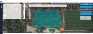 La plateforme permet également à l’utilisateur de cartographier la zone où les données ont été récoltées selon des paramètres sélectionnés. Pour l’exemple ci-dessous, grâce aux moyennes des différents taux d’humidité mesurés, il est possible de cartographier la carte satellite pour avoir visuellement les zones plus ou moins humides.