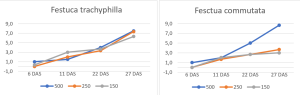 Les résultats se sont montrés peu concluants avec la Festuca trachyphylla (fétuque ovine). En revanche, pour la Festuca rubra commutata (fétuque rouge gazonnante), plus l’intensité lumineuse était forte (500), plus la qualité du gazon était importante.