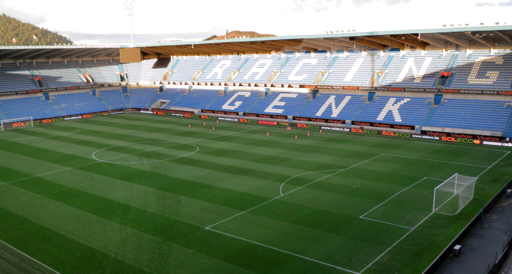 Le KRC Genk, qui évolue en Jupiler Pro League, l’équivalent de la L1 en Belgique, a fait appel à Tarkett Sports pour venir renforcer sa pelouse naturelle posée en mars avec son GrassMaster. Le prix de ces travaux est estimé à 500 000 euros. Une grande première puisque cette technologie n’avait jamais été utilisée auparavant dans le plat pays. Le GrassMaster vient ajouter dans une surface naturelle des fibres artificielles sur 18 centimètres de profondeur, dans une grille de 2×2 centimètres. Ainsi, les racines de l’herbe se mêlent aux fibres, le terrain est donc stable et plus drainant. Autre avantage, il rallonge la durée de vie de la pelouse qui ne nécessite « plus que » de l’entretien saisonnier.
