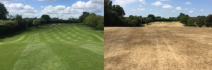 Sale temps pour les greenkeepers anglais qui font face à un climat inhabituel, particulièrement sec et chaud, ce qui a eu pour conséquence de griller tout leur green.