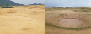 Au Castlegregory Golf, son intendant se réjouissait d’avoir eu « un peu de pluie » mais cela n’a pas suffi à reverdir son terrain. Il ne semble pas pour autant plus inquiet que ça, tweetant « Il est temps de repasser à la couleur verte ! ».