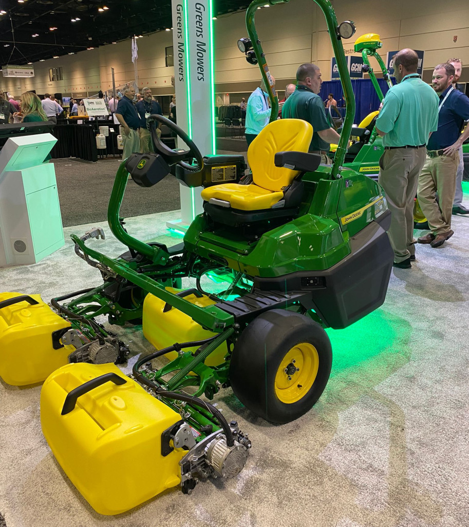 Au BTME 2024, John Deere a présenté pour la première fois en Europe sa tondeuse triplex électrique : la 2775 E-cut.