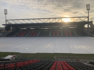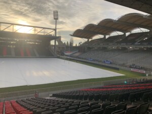La pelouse du Matmut Stadium repose sur le substratTERRAFOOT®, mis en oeuvre par Sportingsol. Ce substrat est composé de pouzzolane et de scories carbonifères. Ses caractéristiques lui permettent d’être plus résistant face aux précipitations importantes et de ne pas gelerpendant l’hiver comme nous le présentions dans l’article sur la collaboration entre Greenkeepers et Fauconniers au Stade Leo Lagrange.
