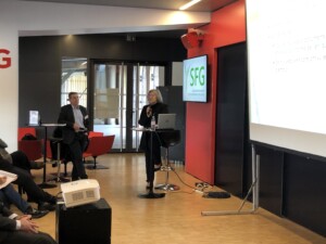 L’après-midi a été consacré à la présentation desnouvelles pelouses du LOU par Adrien Desfonds, Stadium Manager du Matmut Stadium,Arnaud Bovagnet, intendant du Matmut stadium & chauffeur d’engins de terrains de sports chez Parcs & Sportset Robert Vachon, administrateur chez Parcs & Sports.