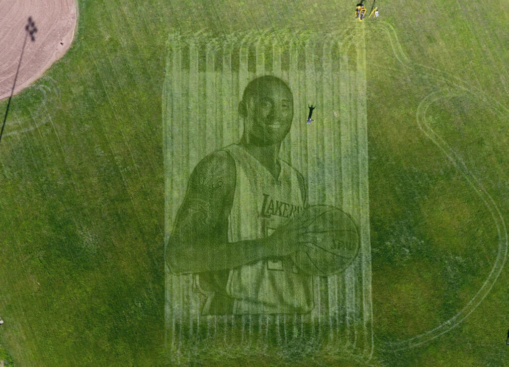 Aux États-Unis, Pete Davis et son épouse Kelli Pearson, un couple californien propriétaire de la célèbre société de Turfprinting, NewGround Technology (NGT) a utilisé une tondeuse à gazon high-tech pour imprimer un portrait gigantesque de 35 x 28 mètres de Kobe Bryant, dans un parc de la ville de Pleasanton.