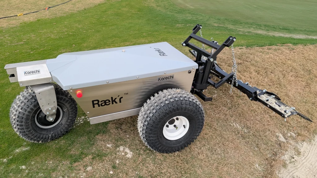 Lors du PGA Show 2026, la marque Korechi, connue pour son ramasse-balles automatisé, a dévoilé un robot ratisseur de bunker : le Raek’r.