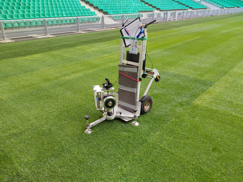Une vingtaine de critères étaient évalués allant de l’absorption des chocs, la restitution d’énergie, la déformation verticale, la résistance rotationnelle, la dureté de surface, la densité de la couverture végétale, la performance végétale, la profondeur d’enracinement, la planéité, la vitesse d’infiltration de l’eau, la compacité du substrat, l’aspect esthétique général… Nous avons également réalisé des contrôles in situ de conformité aux exigences World Rugby des dégagements en gazon synthétique. Pour cette compétition, les dégagements devaient mesurés 5 m alors que la plupart des stades avaient des dégagements de 3,50 m, ce qui a imposé des travaux de mise en conformité.
