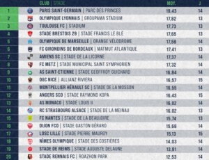Et ce sont donc respectivement le Paris-Saint-Germain (avec une moyenne de 19,43) et l’En Avant Guingamp (moyenne : 19,06), qui remportent les classements de L1 et L2.