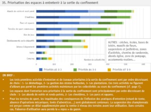 Entre autres enseignements, on s’intéressera aux questions ayant trait à l’entretien des terrains de sport communaux. Ainsi, lorsque les enquêteurs leur ont demandé de classer les espaces verts jugés prioritaires, les répondants ont classé en première position les abords de voirie et ronds-points, en deuxième position les cimetières, et en troisième position les parcs et squares, comme on peut s’en rendre compte sur cette capture d’écran :
