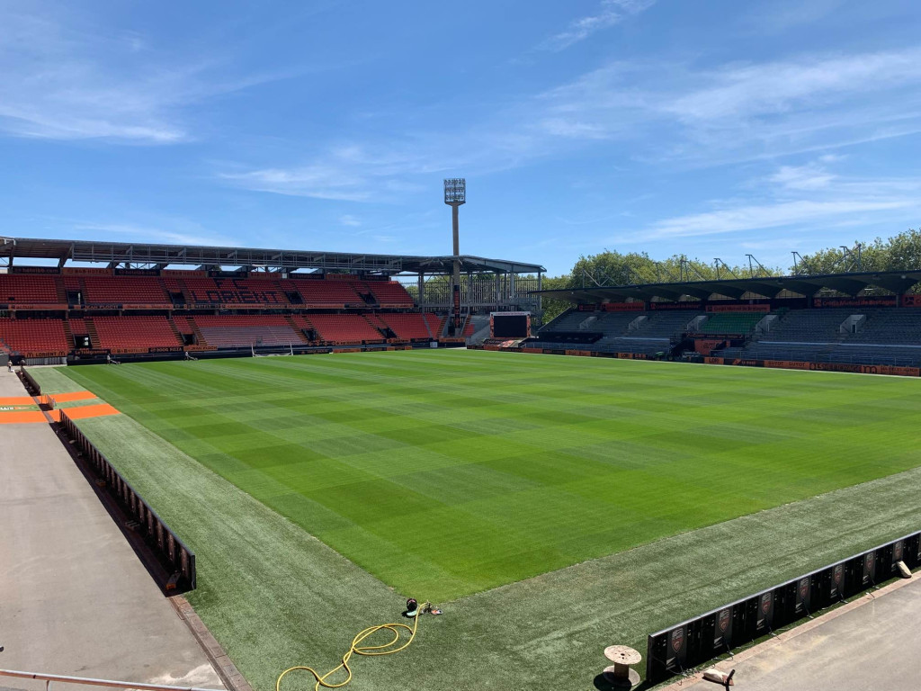 Dans la foulée d’une fin de saison 2022-2023 réussie sportivement pour le FC Lorient (10e au classement), la pelouse du Moustoir a été totalement rénovée. Le placage terre-sable installé à la hâte en aout 2022 a été scalpé. Le substrat hybride de type AirFibr a été rechargé et malaxé. Les travaux ont duré une dizaine de jours et le semis d’un mélange de paturin des prés et de Ray-grass anglais a été effectué à la mi-juin. Presqu’un mois et demi plus tard, le Festival Interceltique débutait (4 août) jusqu’au 13 août.