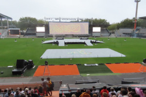 « Ce protocole renforcé, élaboré et signé par les 3 parties, prévoyait notamment la suppression totale du voile de protection de type P30 qui recouvrait historiquement le terrain à des fins artistiques et qui empêchait les opérations de tonte et d’arrosage, la déviation de la grande parade (4000 personnes) en bord de terrain, l’ouverture des plateaux de scène à l’issue de chaque représentation, la fabrication sur mesure de nouveaux pieds de scène et de supports de projecteurs adaptés, la mise en place en bord de terrain de ventilateurs et de nombreux pédiluves pour les artistes et techniciens, la prise bi-quotidienne de mesures (température extérieure, taux d’humidité du substrat) », nous détaille Benjamin Escama, Stadium Manager du FC Lorient.