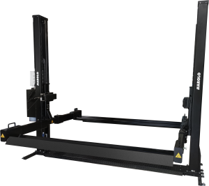 Le MAROLOLEV 3200 LV permet de lever les véhicules ou machines à une hauteur d’1,8 m. L’empattement est réglable entre 1050 et 2600 mm (en prise sous roue) par simple coulissement des traverses le long des bras de levage. Les traverses, selon leur réglage, permettent une prise sous coque ou sous roue selon la longueur du véhicule. Lorsque le pont est en position haute, des rampes escamotables se transforment en butées de roue pour garantir une stabilité du véhicule et la sécurité de l’opérateur.