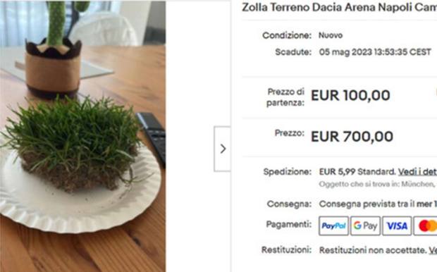 Plusieurs supporters napolitains se sont offert un morceau de la pelouse de l’Udinese en souvenir du titre de Naples en Série A. Le carré de pelouse a été mis en vente dans la foulée.