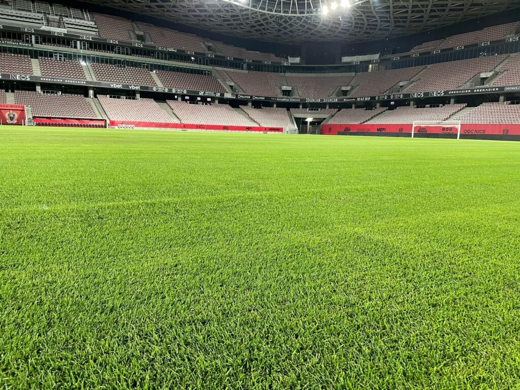 Comme de nombreux clubs, l’OGC Nice a pu démarrer la nouvelle saison sur une nouvelle pelouse. Le gazon de l’Allianz Riviera a fait peau neuve durant la trêve estivale. Fin juillet, un nouveau gazon naturel a été plaqué par les équipes de Parcs & Sports en collaboration avec iTurf Management.