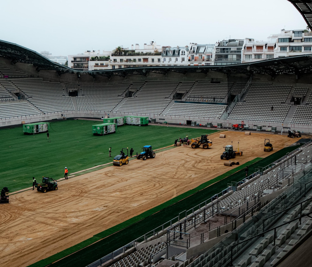 Les travaux se poursuivent au stade Jean Bouin, avec l’arrivée d’une pelouse hybride équipée du système AquaFlow pour accueillir les matchs de Ligue 1 du Paris FC.
