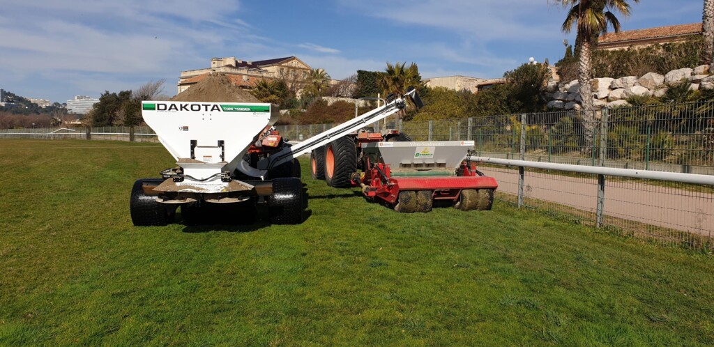 Nous vous en parlions dans cet article, le Vibra-Sandmaster, utilisé en France par Botanica, permet de réaliser des micro-fentes sablées afin d’améliorer le drainage des substrats. Ce matériel a été utilisé il y a deux semaines sur l’hippodrome de Marseille-Borély, géré par la Société Hippique de Marseille, et ce au moins jusqu’en 2022 . La réalisation des micro-fentes et le sablage des quelque 45 000 m2 de piste engazonnée de l’hippodrome se sont déroulés sur près d’une semaine.