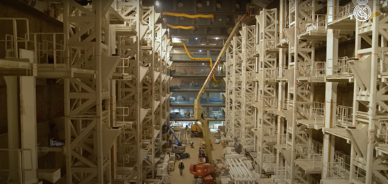 A terme, cet « entrepôt » à gazon souterrain pourra accueillir les 6 plateaux de pelouses sur 6 niveaux. Chaque niveau sera équipé de lumières LED, de rampes de lumières UV, d’un système de ventilation, d’un système de fertirrigation, de caméras et de robots tondeuses.