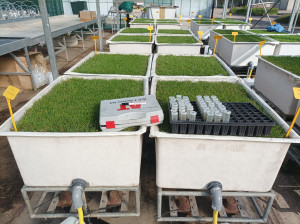 L’étude de ce phénomène se retrouve au cœur de travaux de recherche aux Pays-Bas. La BSNC (Association industrielle néerlandaise pour le sport et l’ingénierie culturelle), en partenariat avec la société de recherche et de conseil Lumbricus, s’intéresse plus particulièrement au lessivage d’azote sur les pelouses hybrides. Dans le cadre de l’étude, une station expérimentale à l’UniFarm Wageningen (une université qui gère 240 ha de surfaces engazonnées expérimentales) et une modélisation mécanistique sur le logiciel Hydrus 2D seront réalisées. Dans cette recherche, deux types de gazon hybride et un gazon naturel vont être testés sur deux substrats différents et avec deux stratégies de fertilisation : une minérale et l’autre organique. « Cette recherche permettra non seulement de quantifier les étapes formelles de lixiviation, mais elle fournira également des informations sur les mécanismes à l’origine de la lixiviation. Cela aidera à créer un nouveau plan de fertilisation pour réduire le lessivage au minimum », indique Thomas Evers, chercheur chez Lumbricus.