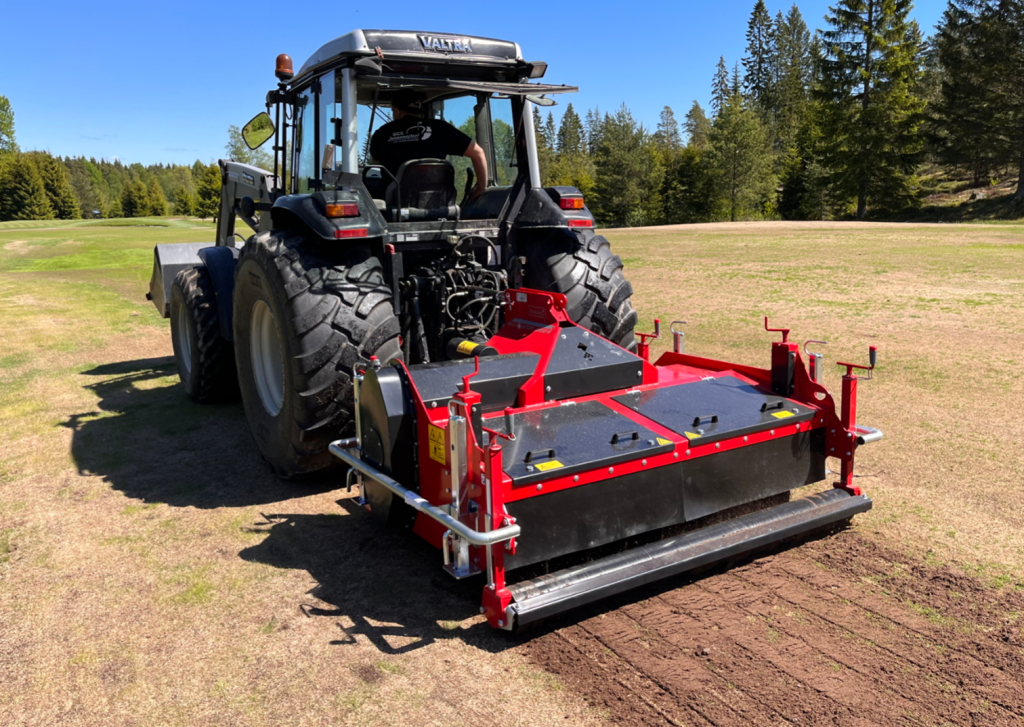 Le Multivator 1800 est quant à lui une machine de rénovation qui décompacte et soulève simultanément le sol enfoui et le matériau de la zone racinaire pour réaliser un top dressing écologique. Grâce aux 9 lames en pointes de carbure espacées de 200 mm, le Multivator 1800 peut enlever jusqu’à 45 m3 par hectare à une profondeur de travail de 130 mm.