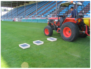 Il est possible de contrôler sa répartition transversale en plaçant plusieurs caissettes à égale distance sur la largeur de travail. La quantité d’engrais présente dans chaque caissette après l’épandage est ensuite récoltée puis pesée.