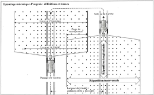 Largeur d’épandage : correspond à la distance de la répartition transversale.
