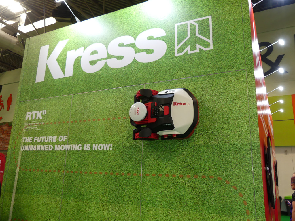 SALTEX 2022 proposait un espace de démonstration pour mettre en lumière les dernières technologies durables de l’entretien des pelouses : L’Eco Village. Au rayon des attractions phares, on retrouvait notamment l’entreprise SGL qui présentait à la fois son tout nouveau système de monitoring et sa sonde Turfpod ainsi que sa rampe de luminothérapie LED 50 , qui associe les technologies LED et infrarouge. L’entreprise Kress présentait, quant à elle, son robot tondeuse Kress RTK.