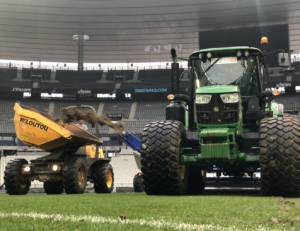 Fraîchement promu en Ligue 1, le Toulouse Football Club profite de la trêve estivale pour installer une nouvelle pelouse hybride sur son centre d’entraînement.
