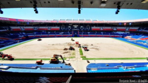 Nouveau gazon au Parc des Princes Comme à chaque année quasiment, le gazon du Parc des Princes est scalpé pour laisser place à une pelouse flambant neuve.