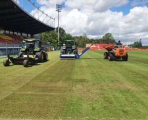 Travaux de régénération au Stade de La Source L’US Orleans profite de la trêve estivale pour régénérer la pelouse du Stade de la Source.