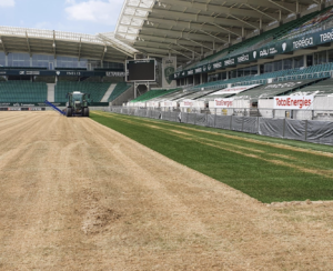 Le terrain du Stade des Alpes, l’enceinte du Grenoble Foot 38 et du FC Grenoble Rugby, bénéficiera d’une nouvelle pelouse hybride, et ce, à régulation thermique.