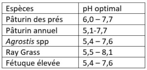 Le maintien du pH dans les normes ci-dessous permet de favoriser la pousse optimale des graminées.
