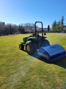 Des interventions lourdes ont également été effectuées pour préparer la saison. « Hydraparts nous a prêté des Shockwave pour décompacter tous les fairways, une opération qui n’avait jamais été effectuée sur ce parcours. On a fait d’importantes opérations d’élagage pour apporter plus de luminosité au parcours car les arbres faisaient de l’ombre au gazon « , détaille-t-il.