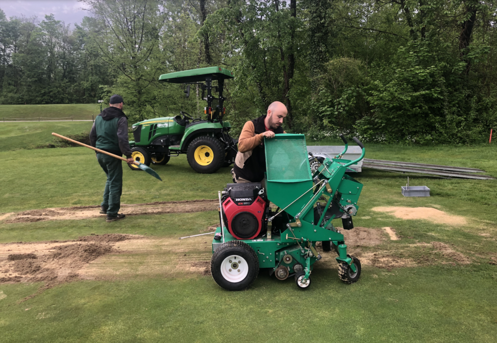 Stephen Leoty, greenkeeper du Golf Club Aix les Bains Riviera des Alpes, nous présente le « Graden Contour Sand Injection Verticutter/Scarifier » qui remplace les opérations de carottage classiques.