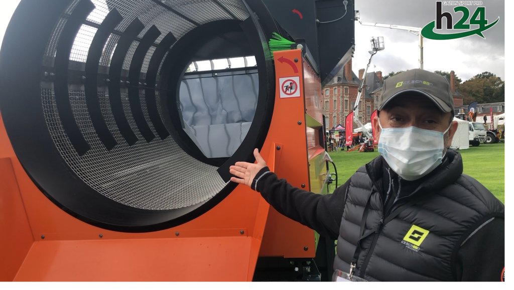 Régis Koessler, gérant de la société Pacamat, nous présente le Trommel MDS MIDI, un cribleur à tambours pour trier le sol des terrains de sport.