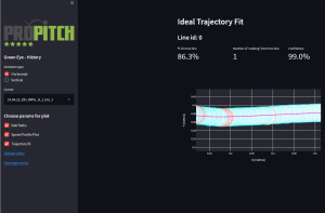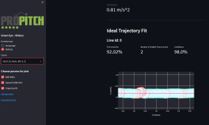 Même principe sur l’axe vertical, où il mesure les rebonds de la balle, sa « douceur ». Le résultat affichée (% On true line) est la moyenne des résultats horizontal et vertical. Pour l’exemple ci-dessous, la déviation verticale de la balle est de 94 %, celle horizontale est de 90 %, le résultat final est donc de 92 %.