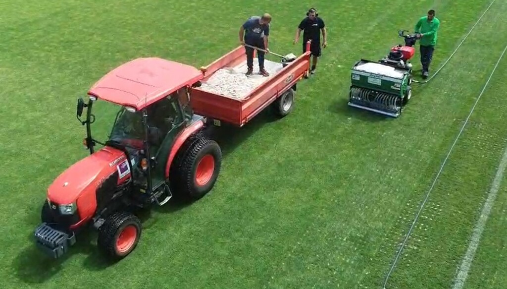 Ayant également la charge du Stade Armandie, Julien Garbino a alors entrepris d’appliquer Polyter sur le terrain du Sporting Union Agen. Le gazon d’Armandie pousse sur un substrat sableux, donc avec une faible capacité de rétention d’eau. Julien Garbino et son équipe ont donc testé Polyter sur deux demi-en-buts – afin de ne pas impacter la surface de jeu – pendant les trois derniers mois.
