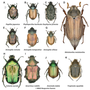 En cas de suspicion du scarabée japonais, veuillez le signaler via l’application Agiir (disponible sur les plateformes Google Play et Apple Store) ou le site internet Ephytia de l’INRAE.