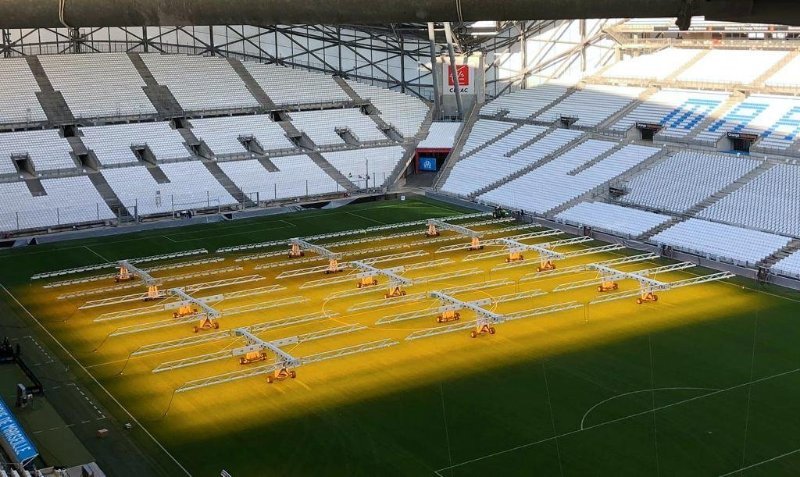 Le gazon du Stade Vélodrome jouit désormais d’un système complet de luminothérapie composé de six rampes LU440 (63 kW par rampe, pour une zone d’éclairage de 440 m2), de trois rampes MU360 (zone d’éclairage de 360 m2), le tout complété d’un analyseur, chargé de surveiller en permanence les conditions de croissance du gazon (rayonnement photosynthétique actif, température et humidité de l’air et du sol…). L’intégralité du système de luminothérapie est fourni par SGL et commercialisé en France par Hydraparts.