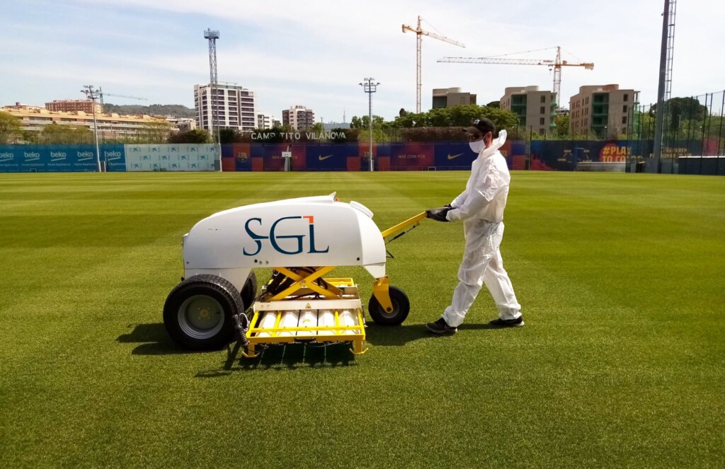 Dans ce registre, le groundsman du FC Barcelone, Octavi Creus, a opté pour une solution radicale : le traitement aux rayons UV. Invité à livrer son témoignage quant à son utilisation de l’UV-C 180, machine de traitement UV à conducteur marchant, sur le site de son fabricant, SGL, Octavi Creus indique qu’il utilise cet équipement pour désinfecter ses gazons d’une éventuelle présence du Covid-19 :